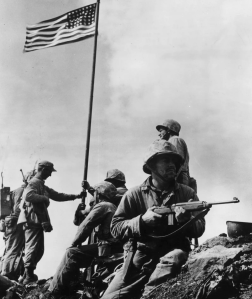 Fyi: I’ve been fascinated by Iwo Jima since middle-school, when I did a “special project” on the battle for my 6th-grade class and got to talk to actual veterans of Iwo. … Fyi II: The photo above, via the NYT/U.S. Navy, is of the less famous “first” flag raising on Iwo Jima.